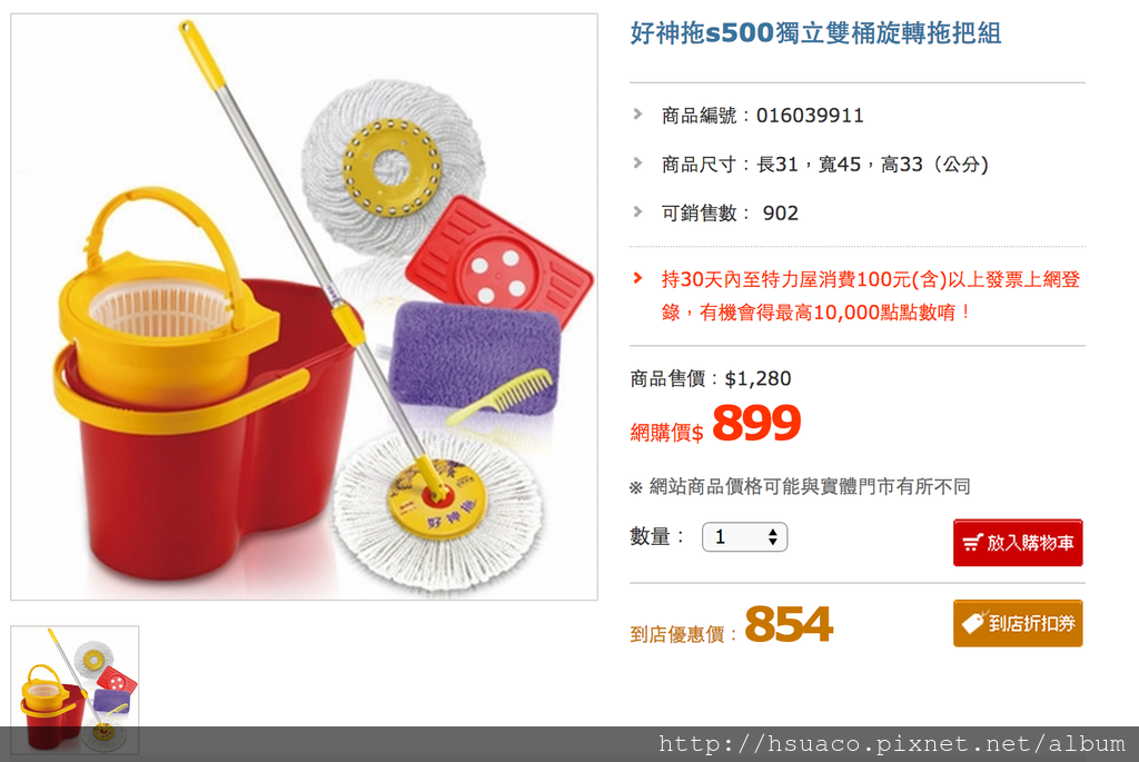 ♥分享♥ 網站訂購,門市取貨~我在特力屋網站買了【好神拖s500獨立雙桶旋轉拖把組】
