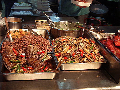 這是報章媒體爭相報導的美食店家,看著老闆不停的補充餐點到展示的檯面上