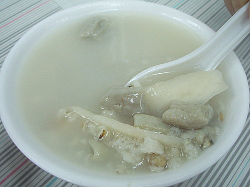 而二姐點的四神湯也是頗受她的好評喔,湯頭的部分酒味香醇,還有滿滿的料~小腸.薏仁..