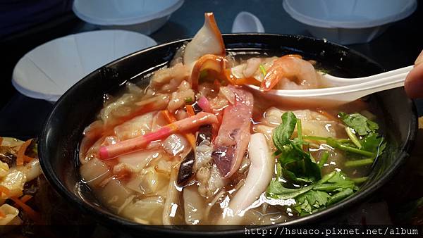海鮮羹的鮮甜完全出自於白菜和蘿蔔等食材的甜味,夜市就可以吃到這種好料,每一口都吃的到驚奇,哇尬意ㄟ