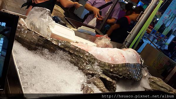 呃,走著走著,怎麼發現夜市裡怎麼有個非常驚人的擺設~是「鱷魚」ㄟ!!!