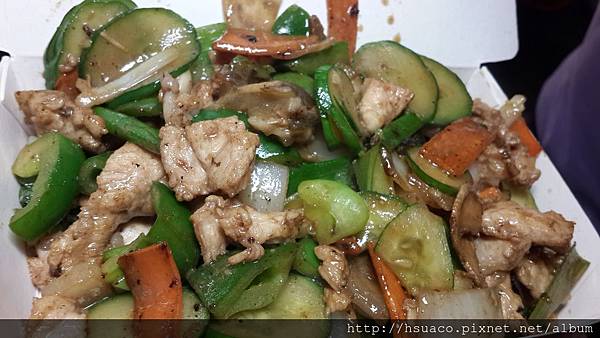 這時店家又推薦他們的三杯口味,說是三杯,其實是大火熱炒,加上青椒.小黃瓜.洋蔥等佐料,我比較喜歡這樣的吃法
