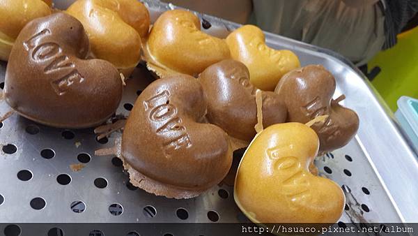 每一顆雞蛋糕上面都有著LOVE的標記,剛出爐就聞到濃濃的奶香味,我顧不得燙,只想要趕緊塞一口呀!!