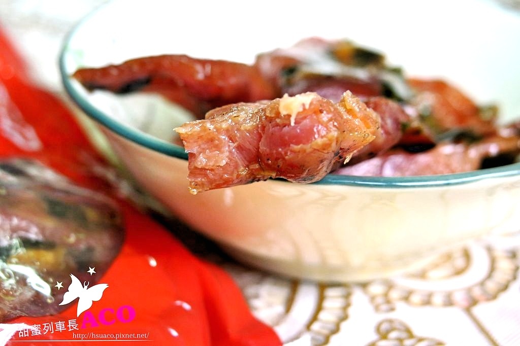 發現肉乾的部分肉汁飽滿,是我喜歡的厚片肉乾(我個人不愛肉紙型的肉乾啦)