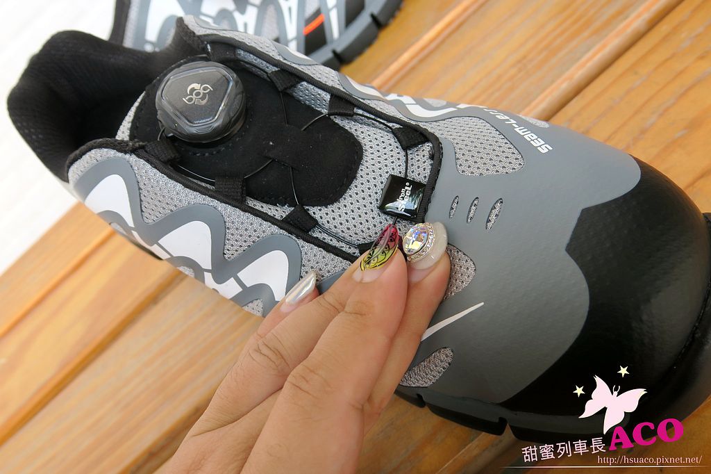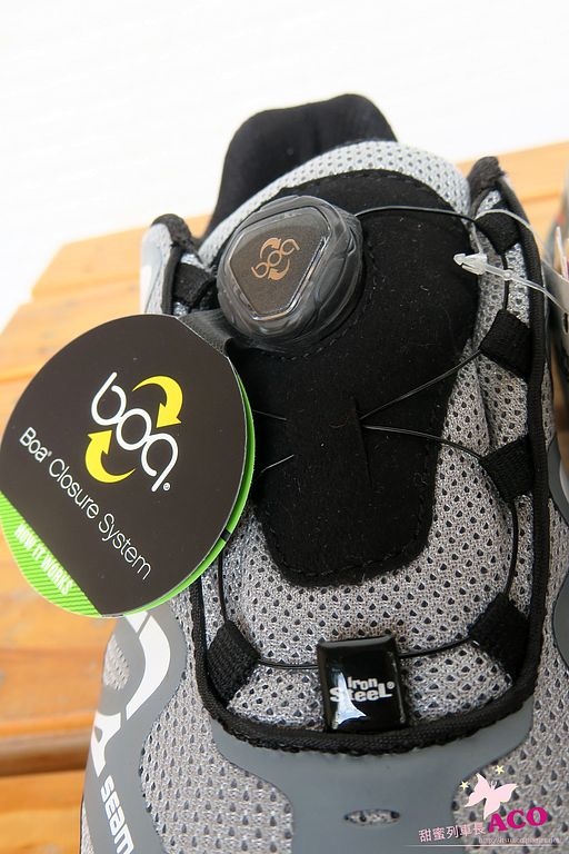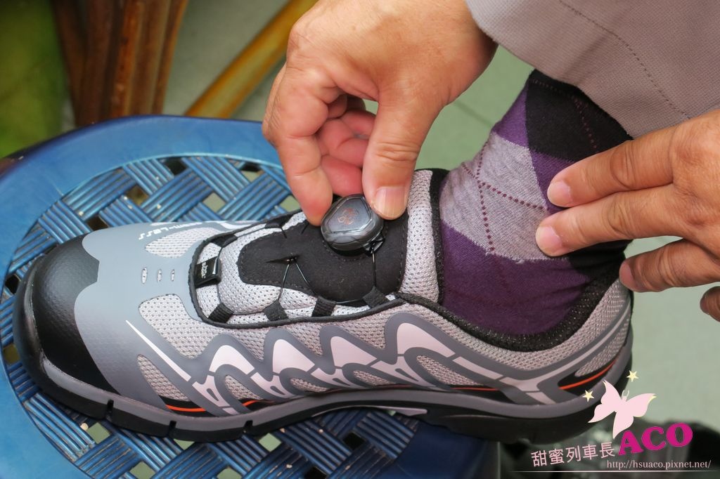 這個boa快旋鈕專利束緊技術,就是免綁鞋帶設計啦,這真的太方便哩!!