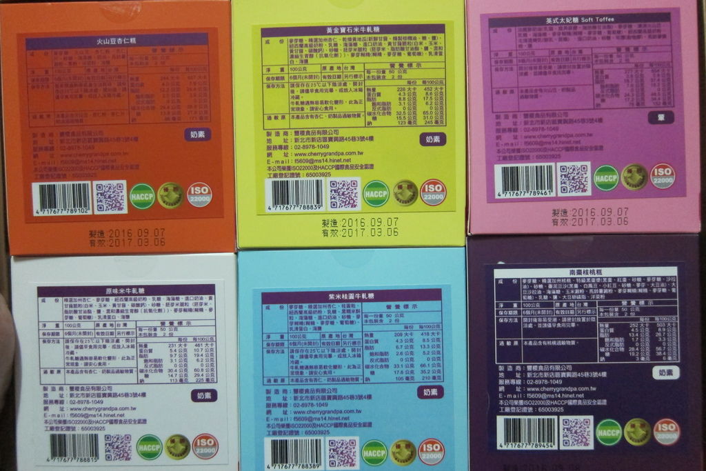盒裝的背面都有產品資訊,包含內容品項、製造日期、保存方法和認證標章等