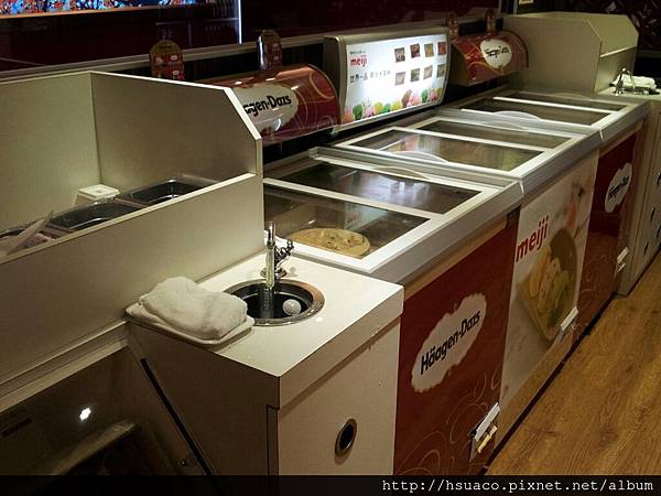 這兒提供二大品牌~Haagen-Dazs和明治冰淇淋,前者會比較甜