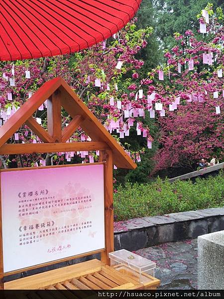 現場也設有幸福賽錢箱供祈福者公益自由樂捐,所得的善款會在櫻花祭後全數捐給聯合勸募中心,很有意義的活動