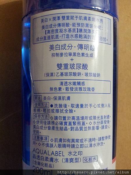 首先來看看美白柔膚水,非常大一瓶,有200ML,份量十足,藍色的瓶身讓我好好奇是啥個品牌呀(忍住!忍住!)