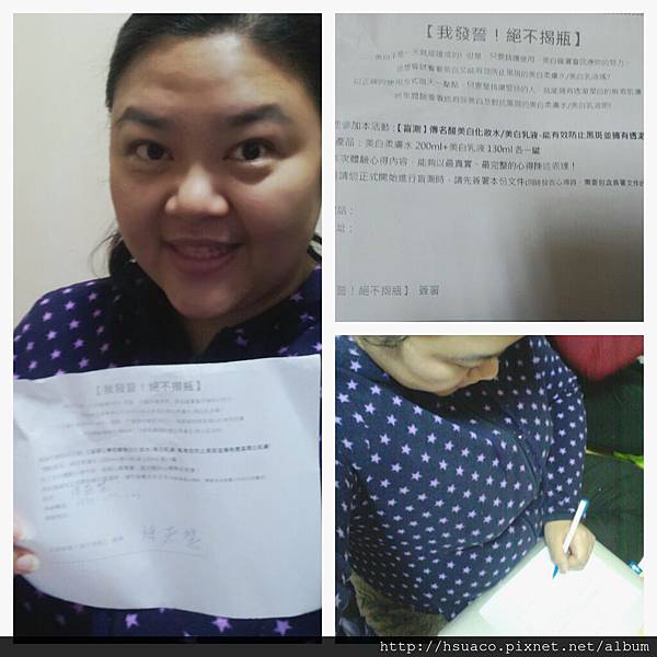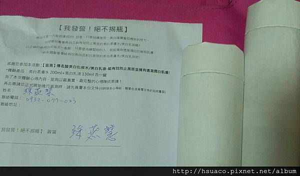 收到這二瓶穿著白色衣裳的保養品,和一份「我發誓!絕不揭瓶!」的簽署書,一切的新奇體驗正要開始