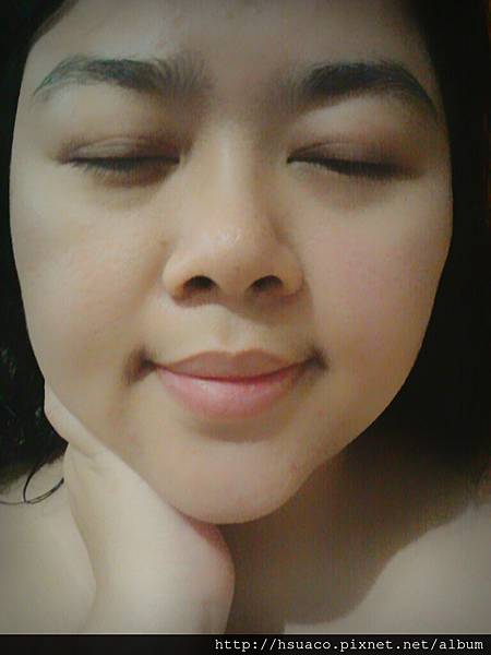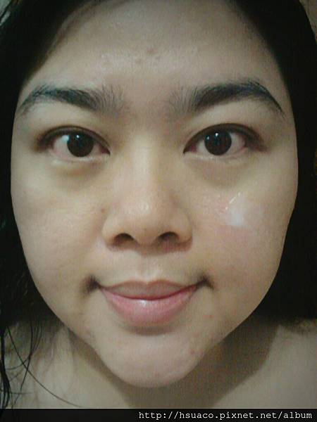 半邊臉塗完後拍個照,讓我覺得很驚艷,可以感覺皮膚透亮,似乎在半邊臉偷偷上妝,美肌處理過一樣