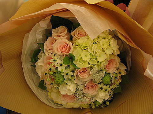 敬酒完後,是新郎官和ACO設計的秘密活動,由新郎捧著花束唱歌進場
